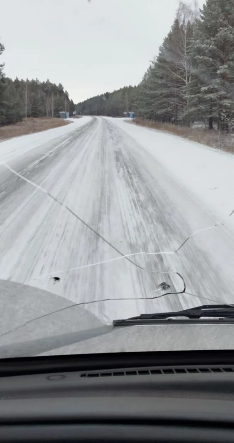 «Трасса Екатеринбург — Курган просто один лед», — написано в tg-канале «KGN45 I КУРГАН». К посту прикреплено фото, на котором водитель едет по ледяной дороге.