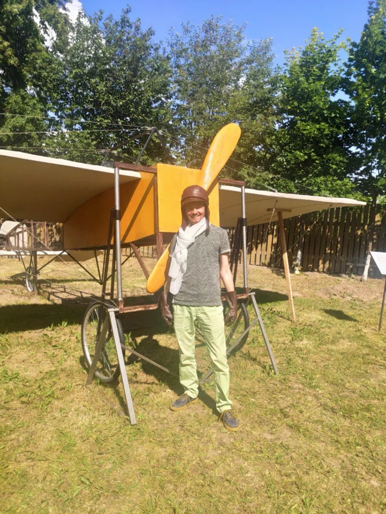 В память о Каменском-авиаторе во дворе дома-музея установлен макет его самолета
