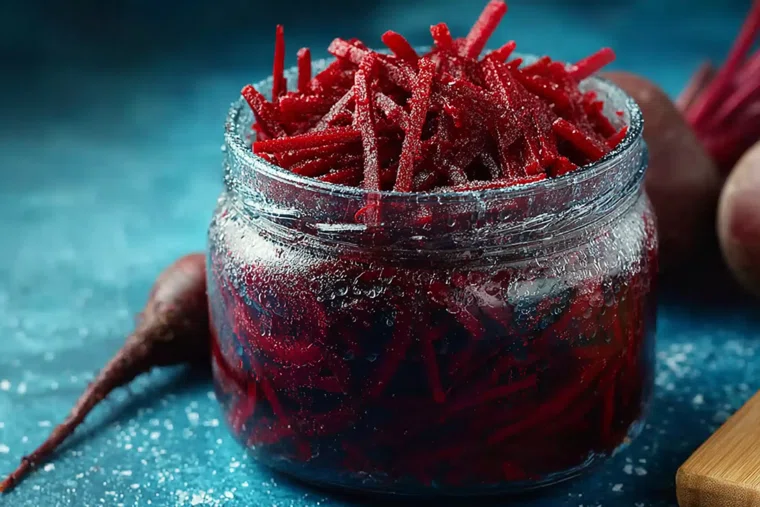 Приготовление: необходимо вымыть свеклу, очистить ее от кожуры и измельчить с помощью терки. В миску следует добавить соль и тщательно размять свеклу руками — это нужно для того, чтобы она выделила сок. После этого измельченную свеклу необходимо плотно уложить в чистую стеклянную банку.