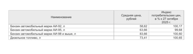 «Средние потребительские цены на отдельные товары и их изменение на 5 ноября 2025 года в Курганской области. Бензин автомобильной марки АИ-92 подорожал на 0,17% (средняя цена — 58,62 руб), марки АИ-98 и выше на 0,60% (средняя цена — 83,66 руб), дизельное топливо на 0,65% (средняя цена — 73,41 руб). Подешевел бензин марки АИ-95 на 0,32% (средняя цена — 63,66 руб)», — пишет Свердловскстат.