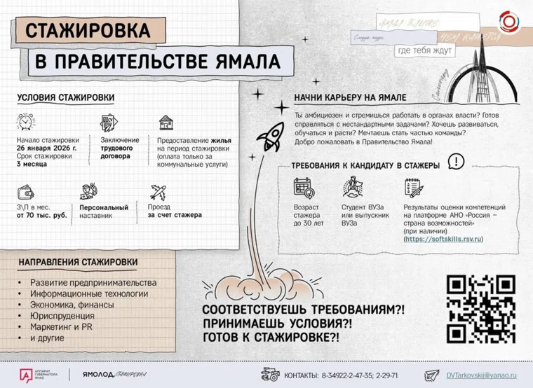 Стажировки будут доступны по различным направлениям, включая экономику, финансы, юриспруденцию, развитие предпринимательства, IT и цифровые коммуникации. Подать заявку можно на официальном сайте программы до 28 ноября. Проект предоставляет молодым специалистам возможность получить практический опыт работы в органах власти региона.