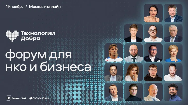 Форум «Технологии Добра» пройдет 19 ноября в Москве в кинотеатре «Октябрь», также возможно онлайн-участие. Организаторами мероприятия выступают Совкомбанк и Фонд «Сколково».