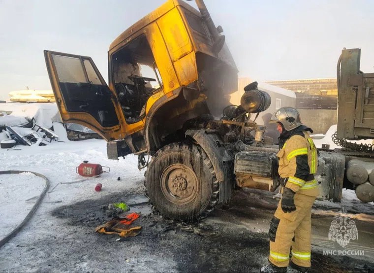 На Ямале в промзоне загорелся «КАМАЗ». Фото