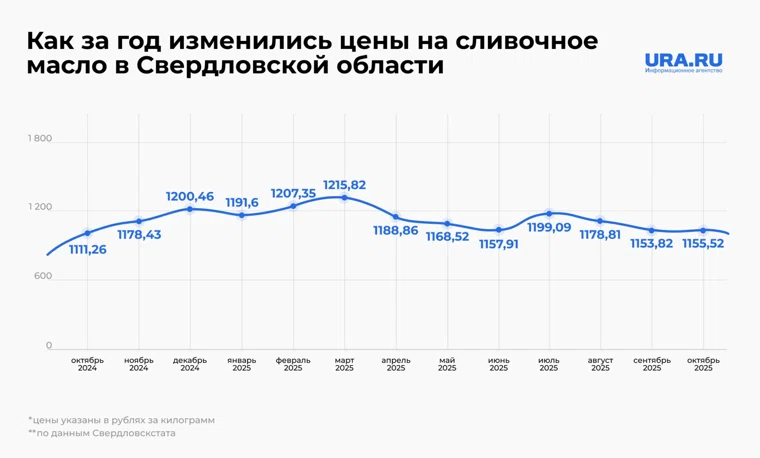 Как изменились цены на сливочное масло за год в Свердловской области. Инфографика