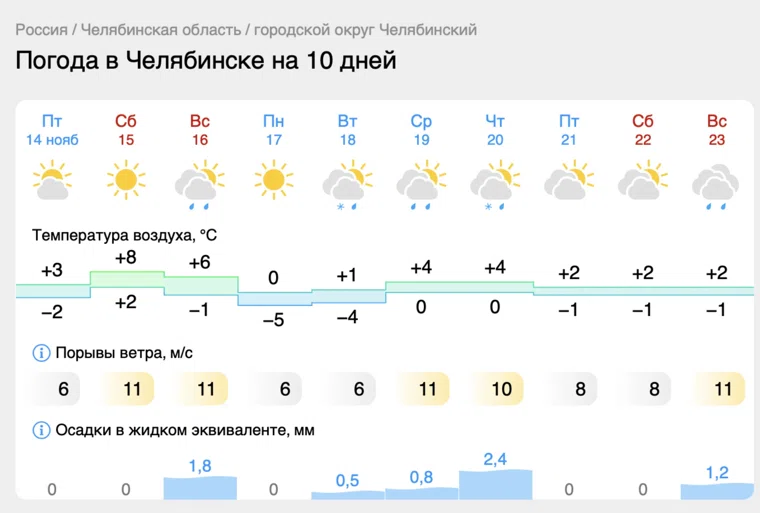 Фото: скрин «Гисметео», https://www.gismeteo.ru/weather-chelyabinsk-4565/10-days/