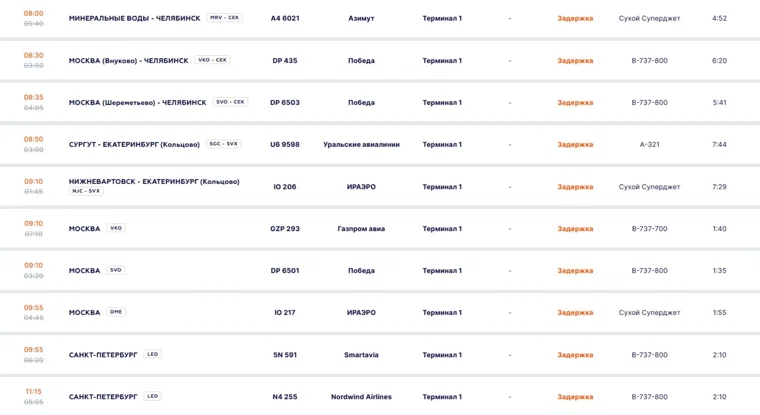 «МИНЕРАЛЬНЫЕ ВОДЫ — ЧЕЛЯБИНСК. Номер рейса А4 6021 авиакомпании „Азимут“ задерживается», — сказано в сообщении. Данная информация опубликована на сайте аэропорта столицы Башкирии.