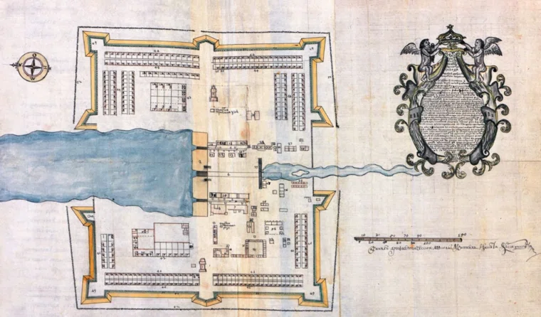 Первый генеральный план Екатеринбурга свидетельствует о том, что застройка города на Исети велась по лучшим образцам фортификационного искусства Германии, Нидерландов и Франции. Крепость окружал земляной вал с бастионами, деревянный палисад, ров с водой и линия рогаток.