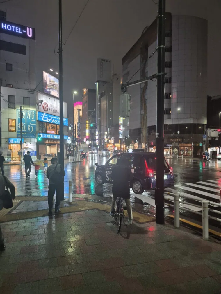Прогулки по столице Японии, особенно в дождливый день, были пропитаны атмосферой из научно-фантастического фильма «Бегущий по лезвию». Неоновые вывески и экраны отражались на мокром асфальте, а в закоулке можно было наткнуться на небольшой храм с двориком и спящим охранником акитой-ину.