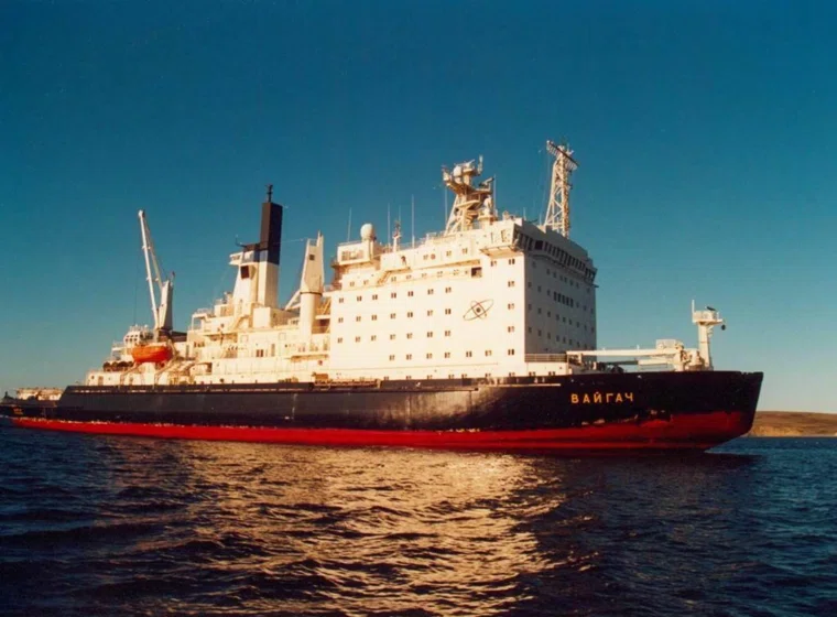 «Вайгач» был предназначен для обслуживания судов, заходящих в устья рек. Он был построен в Финляндии, работы завершались в Ленинграде, ввод в эксплуатацию состоялся в 1990 году. Мощность атомохода «Вайгач» составляет 50 тысяч лошадиных сил, он ломает лед толщиной 1,77 метра при скорости два узла. В основном «Вайгач» используется для сопровождения судов, перевозящих продукцию «Норильского никеля» и также лес и руду из Игарки в Диксон.