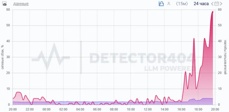 Согласно аналитике, жалобы на работу интернета начались еще с 16:00, однако активный прирост начался ближе к 18:00. За последний час обращения поступили от 143 пользователей, а за сутки — от 618-ти.