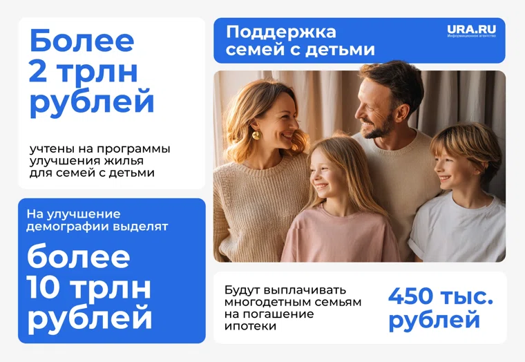 Ключевой приоритет бюджета остается неизменным — масштабная поддержка семей и улучшение демографической ситуации. На эти цели в течение трех лет планируется направить колоссальную сумму — более 10 триллионов рублей.