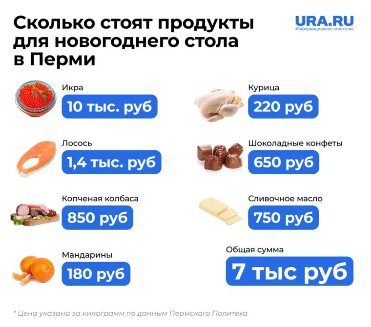 В Перми резко взлетели цены на продукты для новогоднего стола. Инфографика