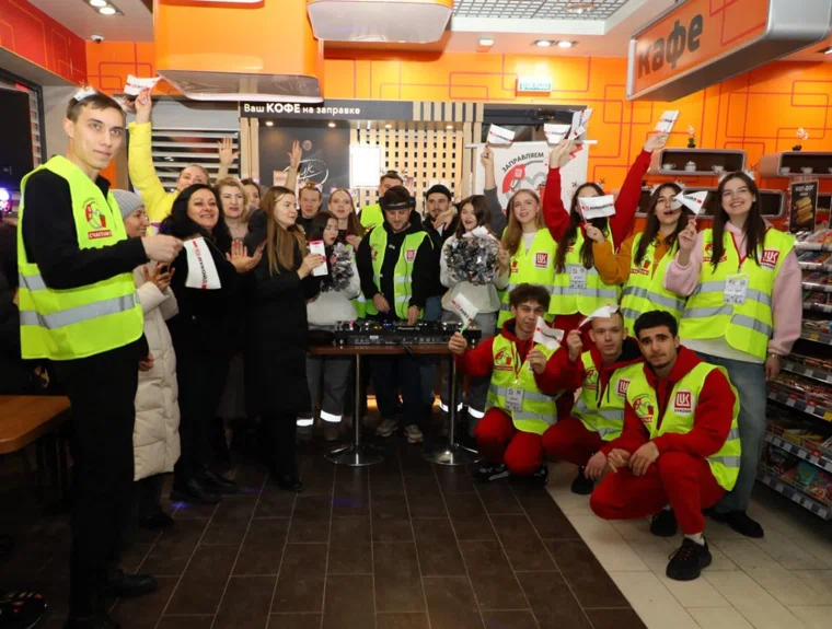 Во время заправки водителям бесплатно предлагали горячий чай и кофе. Посетителям дарили сувениры — брелоки, мягкие игрушки и автомобильные аксессуары. Каждый сотый клиент получал сертификат на тысячу бонусных баллов.