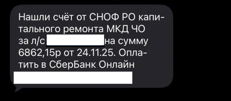 «Пришло уведомление от „Сбера“ о долге перед СНОФ РО капитального ремонта МКД ЧО. Сумма — несколько тысяч рублей. При этом оплачиваю счета каждый месяц», — поделился один из читателей.
