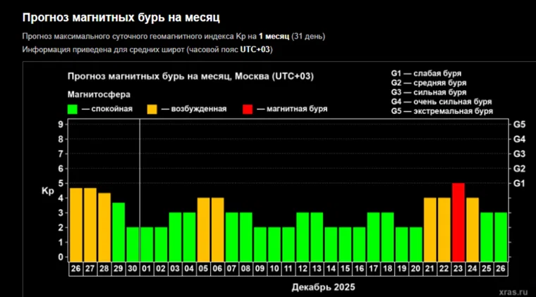 - 23 декабря — полноценная магнитная буря