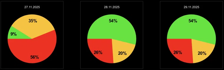 Пик геомагнитной активности придется на полночь 28 ноября, после чего магнитосфера постепенно начнет успокаиваться. Таким образом, пятница пройдет без значимых геомагнитных штормов, а незначительные колебания будут ощущаться только особо чувствительными людьми.