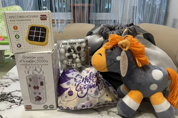 Самые дешевые предложения связаны с подарками от «Сургутнефтегаза». «Новые подарки, в пакете: конфеты, игрушка, книжка, раскраски. Две штуки по 800 рублей каждый», — указано в объявлении жительницы Сургута. Такой же набор продают и по 1 тысяче рублей.