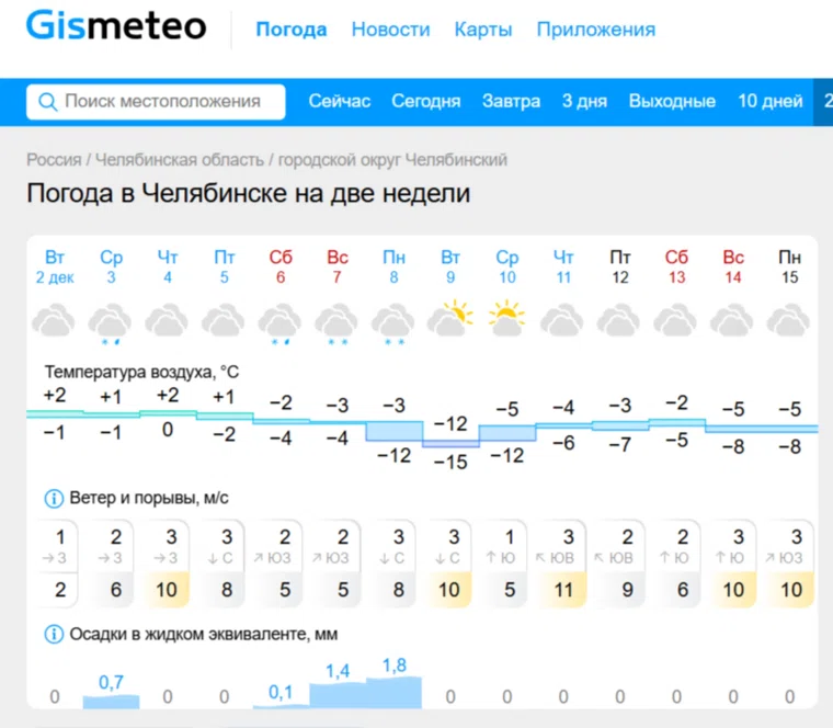 Температура упадет до -15 градусов: в Челябинске прогнозируется резкое похолодание. Скрин