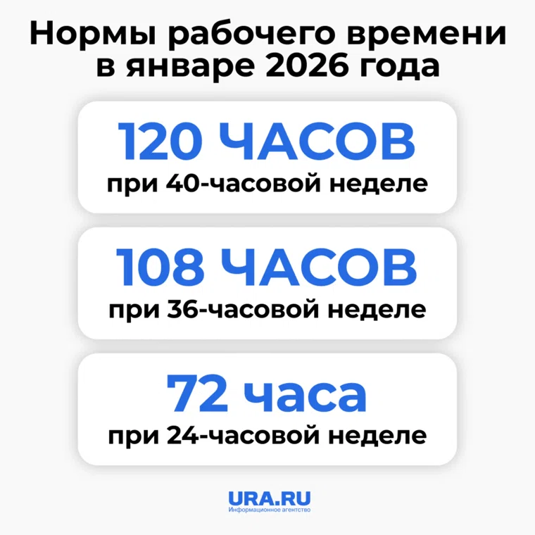 Из-за большого количества праздников норма рабочего времени в январе — самая низкая в году. При стандартной 40-часовой рабочей неделе она составит всего 120 часов. При 36-часовой неделе норма равна 108 часам, а при 24-часовой — 72 часам. Эти нормы установлены статьями 91 и 92 Трудового кодекса РФ и это накладывает определенные особенности.