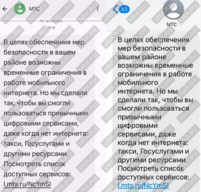 «В целях обеспечения мер безопасности в вашем районе возможны временные ограничения в работе мобильного интернета. Но мы сделали так, чтобы вы смогли пользоваться привычными цифровыми сервисами, даже когда нет интернета: такси, Госуслугами и другими ресурсами», — говорится в SMS-оповещении.