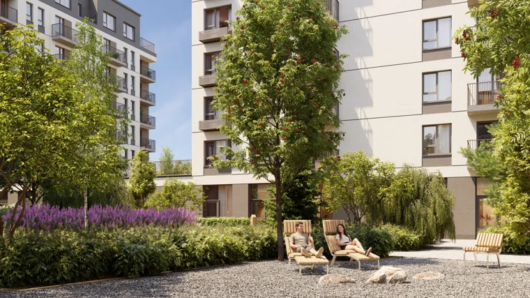 Большое количество зелени — отличительный почерк Брусники. Во дворах, которые всегда свободны от машин, зелень занимает около 70% площади. Здесь есть место как детским и спортивным площадкам, так и зонам для спокойного отдыха. Всё оборудование выполнено из дерева: это экологичный материал, который не нагревается летом и не промерзает зимой.