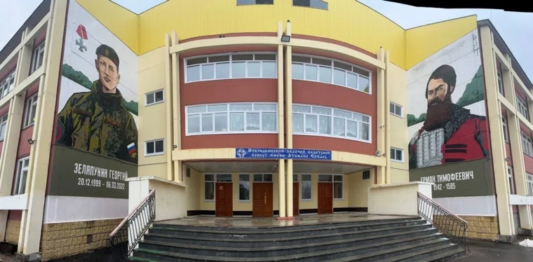 «Профессиональные художники преобразили стены казачьего кадетского корпуса, создав два впечатляющих патриотических мурала. На первом — изображение легендарного атамана Ермака, олицетворяющее всех героев-казаков прошлого, а на втором — дань памяти всем героям настоящего, портрет выпускника корпуса, кавалера ордена Мужества Георгия Зеляпукина», — отмечают власти.