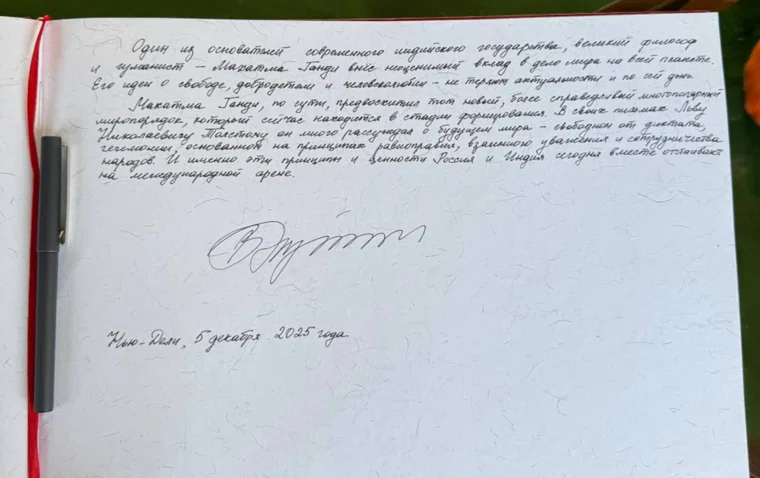 Путин оставил запись в книге почетных гостей мемориального комплекса «Раджгхат»