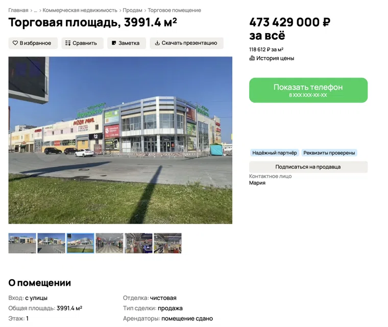 Фото: скрин сайта «Авито», https://www.avito.ru/tyumen/kommercheskaya_nedvizhimost/torgovaya_ploschad_3991.4_m_7532561660
