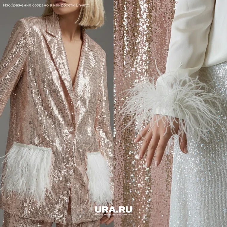 Сияние возвращается, но в новой, более интеллектуальной интерпретации. В тренде не сплошное покрытие, а акцентные вставки — например, пайетки на одном рукаве, воротнике или вдоль шва. Такой прием делает образ современным и позволяет избежать эффекта «новогодней гирлянды». Идеально для топов, жакетов или юбок-миди.